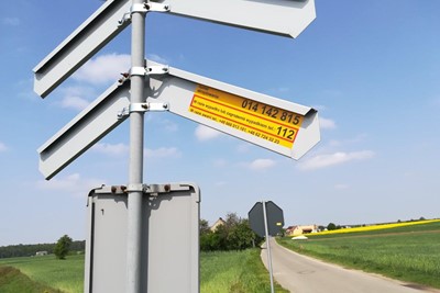 14 tys. przejazdów kolejowo-drogowych ma już indywidualny numer oraz telefony alarmowe umieszczone na żółtych naklejkach.